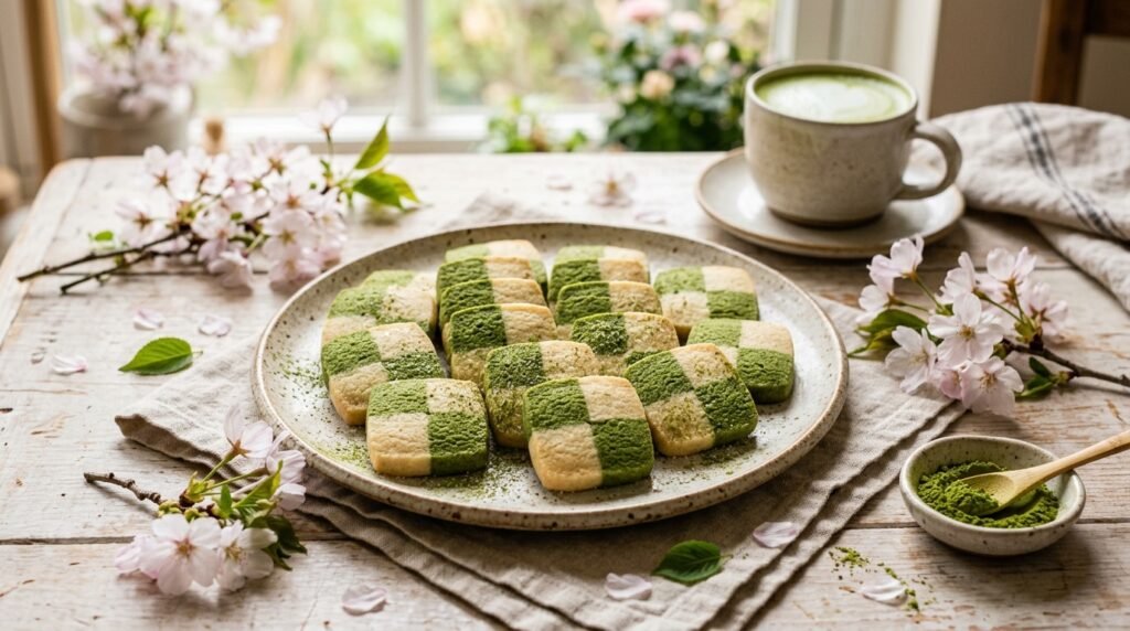 Matcha brings a brilliant, natural green hue that perfectly matches the fresh grass and budding trees of spring. Checkerboard cookies slice into striking geometric patterns, offering a fun and visually satisfying aesthetic.