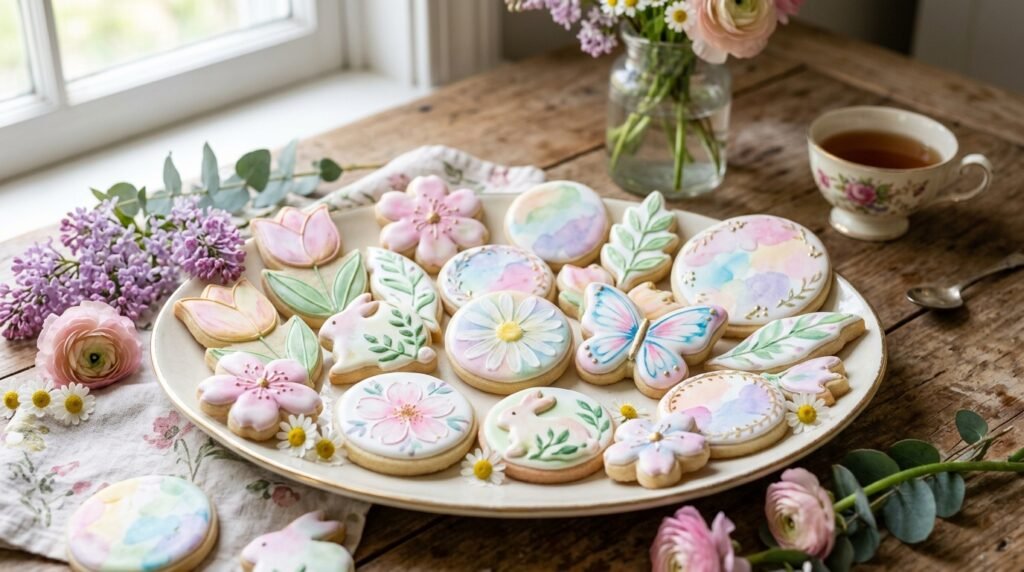 Watercolor sugar cookies bring a dreamy, artistic touch to your spring baking ideas. These cookies mimic the soft, blended strokes of a watercolor painting. They offer a modern twist on the traditional royal icing cookie.