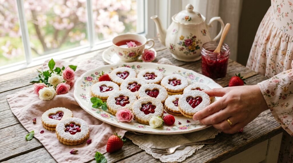 Linzer cookies offer a classic, romantic aesthetic that translates beautifully into spring baking. By swapping traditional raspberry jam for a delicate strawberry rose preserve, you update the flavor profile for the season.